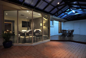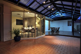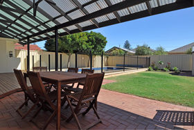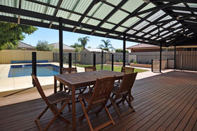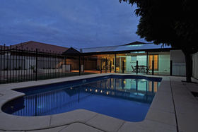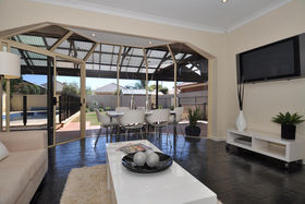 The large family room is a little bit different with conservatory style windows allows for panoramic views of the fabulous outdoor entertainment area .You can entertain in style under the 12 meter pergola with jarrah decking and entertaining lights and stay cool in the sparkling 9.5m Tuscan style pool with glass and arrow head fencing.