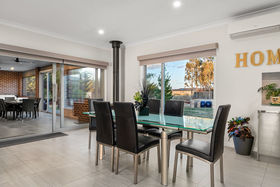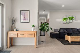 As soon as you walk onto this property you will be immediately impressed, a huge driveway creates a perfect space for extra car accommodation or to hold trailers caravans and more. The landscaped front yard boasts feature ornaments and plenty of shrubbery and native flora throughout the entirety of the yard. The front façade sets the modern and sleek tone you can expect throughout, with tinted windows allowing privacy and an aluminium framed double front door leads you into the home.