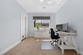 A spacious, carpeted study sits conveniently near the garage with internal access, making it ideal for working from home or as an additional multipurpose room.