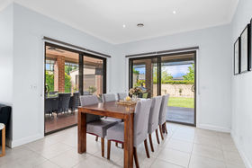 The home is immediately welcoming, with a beautifully maintained front garden and neat lawns creating an inviting first impression. Inside, high ceilings and abundant natural light give the home an open, airy feel, while tiled living areas, downlights and ducted heating ensure both style and comfort. Solar panels add an extra layer of efficiency.